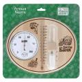Включает в себя: термометр (до 120°С), гигрометр (до 100%) и песочные часы (до 15 минут)