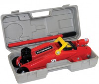 Подкатные домкраты имеют тот же принцип работы, что и бутылочные, но у них ось цилиндра не в вертикальной оси, а поршень не совмещается с подхватом напрямую. Подкатной домкрат представляет собой тележку на колесах. В движение приводится качанием рычага. Идеально подходит для поднятия автомобиля как с одной стороны, так и полностью. Быстрый в установке и эксплуатации. Купить автомобильный подкатной домкрат можно в нашем интернет-магазине.