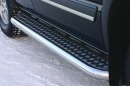 Боковые пороги на Chevrolet Captiva из нержавеющей стали диаметром 76 мм не боятся коррозии, сколов и царапин и выдерживают большие нагрузки. Боковые подножки-пороги с проступями сделаны специально для автомобилей Chevrolet Captiva от 2012 г.в., легко устанавливаются и стильно смотрятся.
