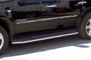 Боковые пороги на Chevrolet Tahoe из нержавеющей стали диаметром 76 мм не боятся коррозии, сколов и царапин и выдерживают большие нагрузки. Боковые подножки-пороги трубой сделаны специально для автомобилей Chevrolet Tahoe 2007-2008 г.в., легко устанавливаются и стильно смотрятся.