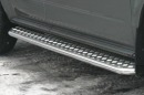 Боковые пороги на Nissan NP300 из нержавеющей стали диаметром 76 мм не боятся коррозии, сколов и царапин и выдерживают большие нагрузки. Боковые подножки-пороги трубой с проступями сделаны специально для автомобилей Nissan NP300, легко устанавливаются и стильно смотрятся. В комплекте вы получите 2 подножки.