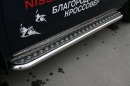 Боковые пороги на Nissan Murano из нержавеющей стали диаметром 42 мм не боятся коррозии, сколов и царапин и выдерживают большие нагрузки. Боковые подножки-пороги с листом сделаны специально для автомобилей Nissan Murano 2005-2008 г.в., легко устанавливаются и стильно смотрятся.