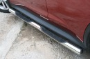 Боковые пороги на Nissan Juke из нержавеющей стали диаметром 60 мм не боятся коррозии, сколов и царапин и выдерживают большие нагрузки. Боковые подножки-пороги с листом сделаны специально для автомобилей Nissan Juke от 2011 г.в., легко устанавливаются и стильно смотрятся. В комплекте вы получите 2 подножки.