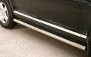 Боковые пороги на Volkswagen Touareg из нержавеющей стали диаметром 60 мм не боятся коррозии, сколов и царапин и выдерживают большие нагрузки. Боковые подножки-пороги с листом сделаны специально для автомобилей Volkswagen Touareg 2006-2009 г.в., легко устанавливаются и стильно смотрятся. В комплекте вы получите 2 подножки.