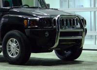 Защита для бампера Hummer – это обвес для Hummer, который поможет избежать повреждений бампера вашего авто и защитит его от ударов, сколов и вмятин. В этом разделе представлена защита бамперов, сделанная специально для автомобилей Hummer, поэтому для монтажа вам не придется подгонять обвес под размеры бампера или сверлить кузов автомобиля. Защита бампера на Хаммер изготовлена из высокопрочных и качественных материалов, устойчива к коррозии и механическим повреждениям.